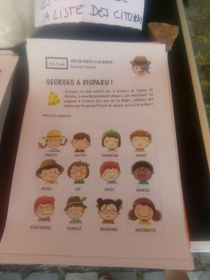 Georges, la plus petite des 4 cloches de l'église St Nicolas, a mystérieusement disparu. En résolvant plusieurs énigmes à travers les rues de La Hulpe, collectez des indices qui vous permettront de remettre la main sur Georges.